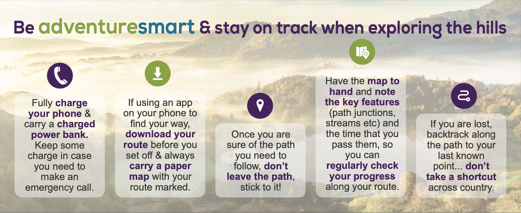 To share our knowledge about adventure: Ensuring visitors and local communities know how to prepare for an adventure in the landscape in all conditions